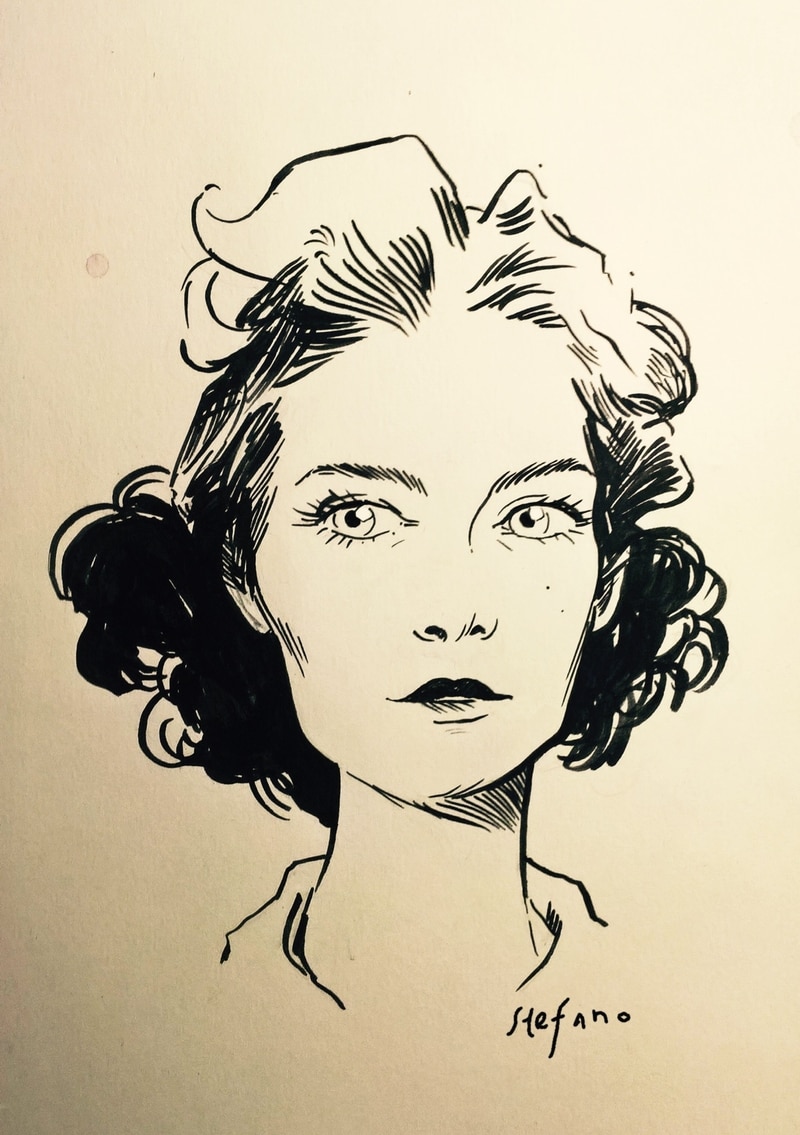 Questa donna ritratta con una tecnica fumettistica vintage ha una spiccata deriva berniniana, l'immediatezza e l'intolleranza dell'inchiostro nero mi hanno rapito.